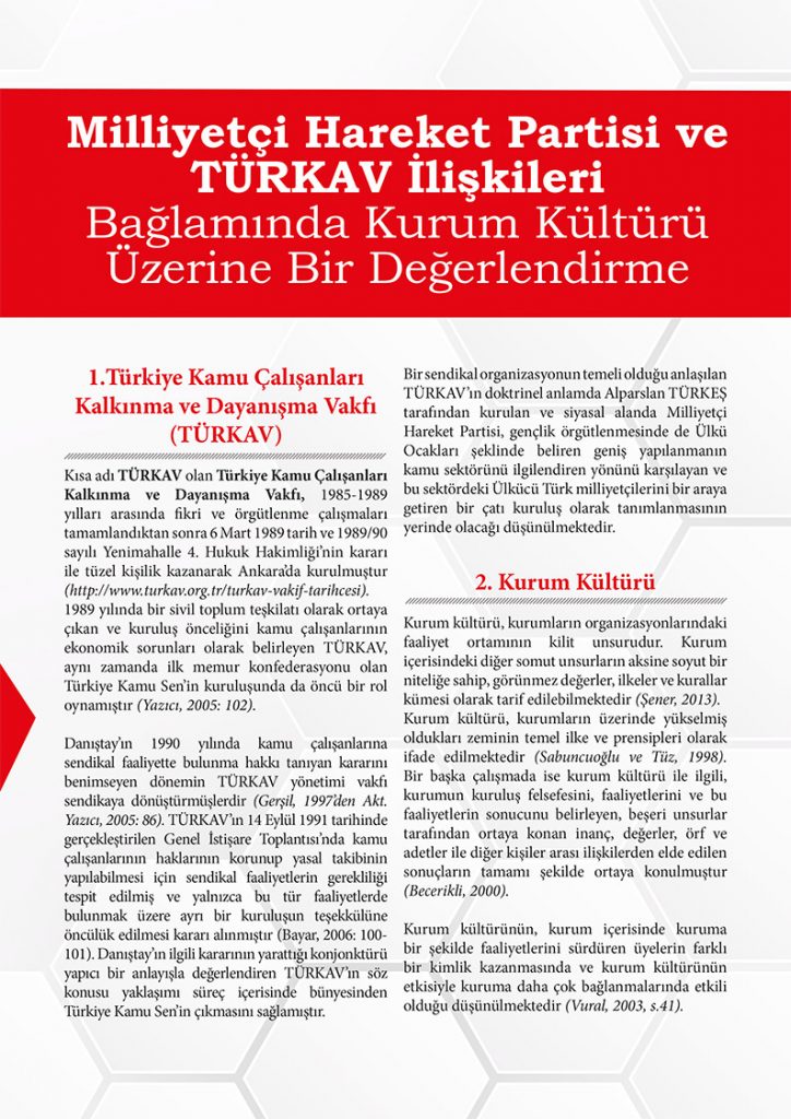 Milliyetçi Hareket Partisi ve TÜRKAV İlişkileri Bağlamında Kurum Kültürü Üzerine Bir Değerlendirme