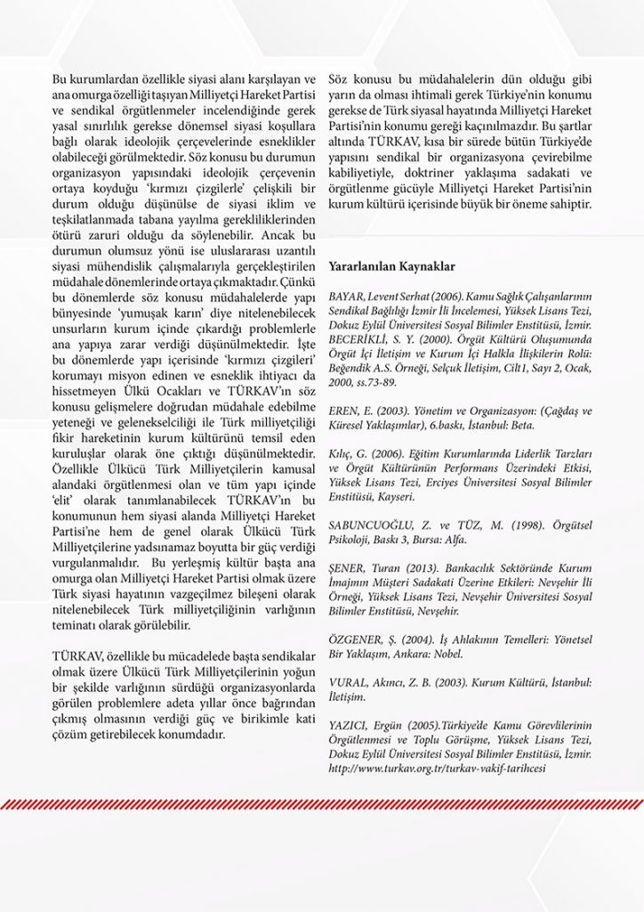 3.Milliyetçi Hareket Partisi TÜRKAV ve Kurum Kültürü