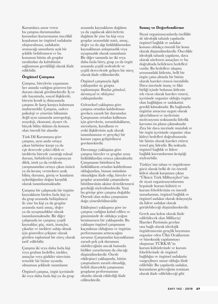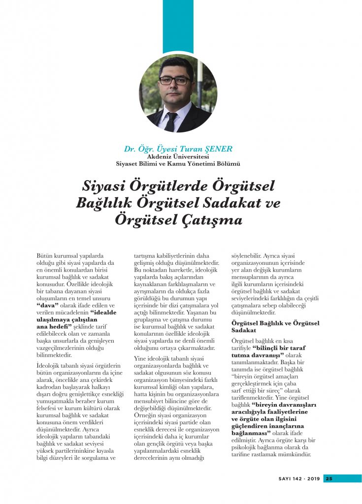 Siyasi Örgütlerde Örgütsel Bağlılık Örgütsel Sadakat ve Örgütsel Çatışma