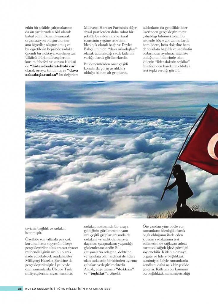 Özellikle son yıllarda pek çok kuruma hatta topyekün ülkeye gerçekleştirilen uluslararası siyaset mühendisliğinin ürünü olarak ifade edilebilecek müdahaleler Milliyetçi Hareket Partisine de gerçekleştirilmiştir. İşte böyle özel zamanlarda Ülkücü Türk milliyetçilerinin siyasi temsilcisi Milliyetçi Hareket Partisinin diğer siyasi partilerden daha rahat bir şekilde bu saldırıları bertaraf etmesinin yegâne sebebinin ideolojik olarak bağlı ve Devlet BAHÇELİ’nin de  “dava arkadaşları” olarak tanımladığı sadık kitlenin varlığı olarak görülmektedir.