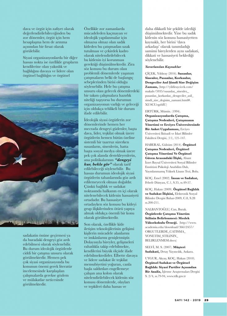 UYGUR, Akyay, KOÇ, Hakan (2010). Örgütsel Sadakat ve Örgütsel Bağlılık: Siyasi Partiler Açısından Bir Analiz, İşletme Araştırmaları Dergisi S. 2/4, ss.79-94